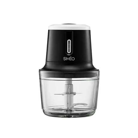 La conception sans fil du hachoir électrique confère à l’utilisateur une grande liberté pour cuisiner au quotidien. Nul besoin de le brancher sur le secteur. Il fonctionne grâce à trois batteries rechargeables de haute qualité ayant une tenue de charge performante même en cas d’inutilisation prolongée. A l’aide du chargeur et du câble USB C inclus, la charge complète s’effectue en 5 heures et autorise 8 à 10 préparations environ. Muni sur la face avant d’un indicateur de charge, celui-ci indique le niveau de charge des batteries et alerte en clignotant de la nécessité du rechargement. Polyvalent, le hachoir dispose de 2 vitesses de fonctionnement de 2100 tr/min et de 2300 tr/min afin de s’adapter aux aliments et aux quantités à transformer pour des résultats parfaits. De façon à garantir une utilisation sûre, il possède un bouton de sécurité à maintenir enfoncé à la vitesse choisie, un système de sécurité surcharge arrêtant l’appareil en cas d’un surplus d’ingrédients et un socle antidérapant sous le bol en verre. Idéal dans la confection de nombreuses recettes, il offre une capacité de 0,5 L et est doté de 4 lames en inox tranchantes pour hacher avec précision tous les aliments.